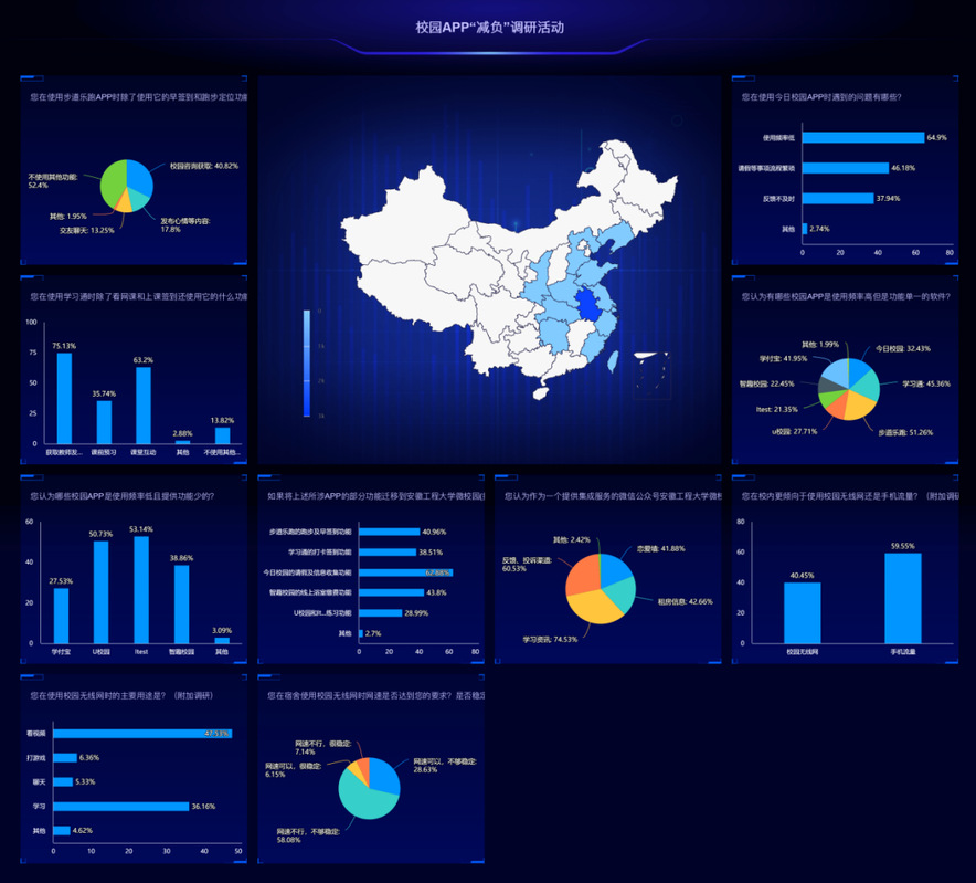 此次活动本着“打造智慧校园,科技便利校园生活”的理念,力求为全校师生创造一个良好的学习、工作、生活的综合移动版智慧校园平台,从而净化校园移动互联应用产品,减少师生APP安装数量,提升用户体验。本次活动吸引了3000多名同学参与填写调查问卷,网络安全与信息化协会筹备委员会抽奖说说浏览量达1160次,500余名学同学参与了线下抽奖。