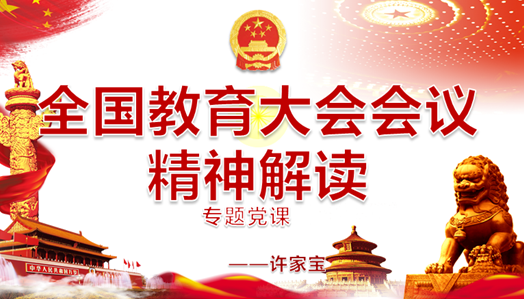 许家宝从全国教育大会简介,习总书记重要讲话全文解读,习近平这样向筑梦人致敬,习近平十大“金句”等方面进行了交流。他强调,一是要坚持党对教育的全面领导,二是要坚持立德树人,三是要牢记习近平总书记对教师提出的新的更高要求,更好担当起“传播知识、传播思想、传播真理,塑造灵魂、塑造生命、塑造新人”的时代重任,努力做“四有”好老师,做先进思想文化的传播者、党执政的坚定支持者、学生健康成长的指导者和引路人。