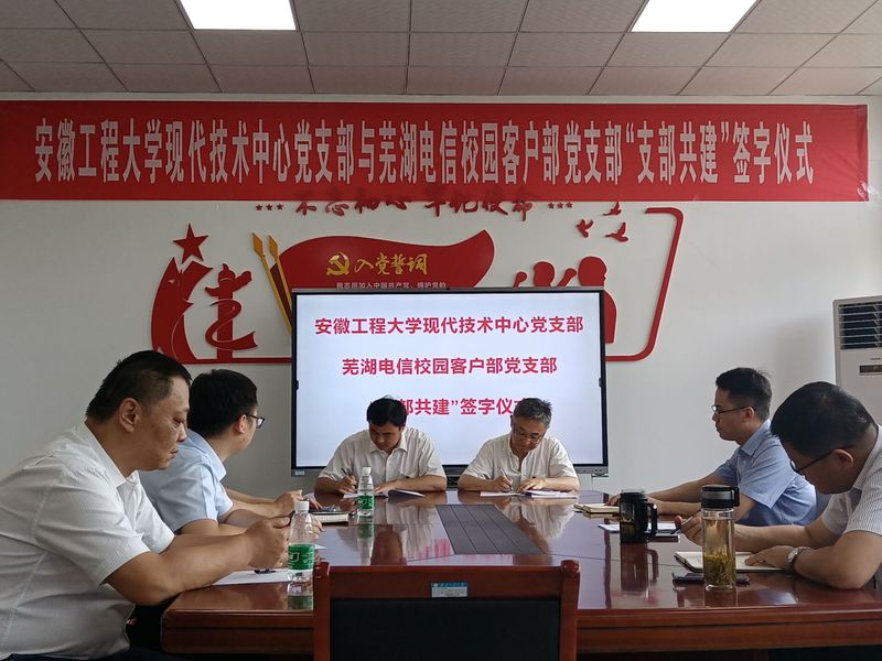 为深入贯彻落实新时代党的建设总要求,实现党组织优势互补,努力构建“资源共享、优势互补、互相促进、共同提高”的党建工作新格局,2021年6月9日下午,现代技术中心党支部与芜湖电信校园客户部党支部在5j215举行“支部共建”签字仪式,共同推进双方党建工作再上新台阶。