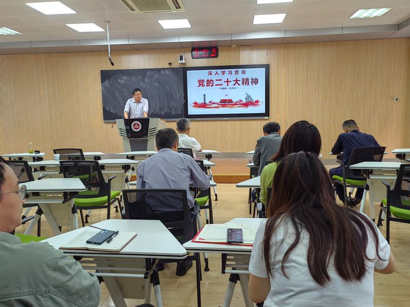 中心副主任陈阳以《深入学习贯彻党的二十大精神》为题为全体党员上党课,梳理了党的一大到十九大的召开情况、重要内容和历史意义。重点就如何深刻领会党的二十大的重大意义、如何准确把握党的二十大精神实质进行了深入阐述。
