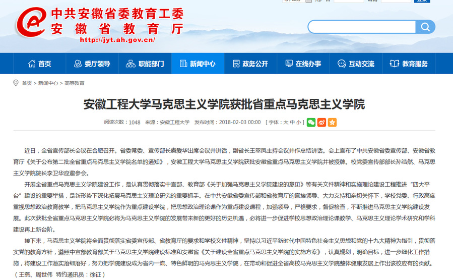 【安徽教育网】RayBetApp官网下载 马克思主义学院获批省重点马克思主义学院
