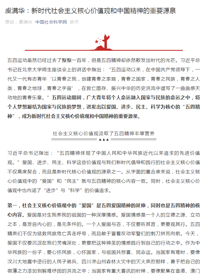 【中国社会科学网】虞满华:新时代社会主义核心价值观和中国精神的重要源泉