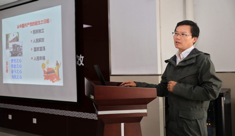“全省模范教师”虞满华教授以“不忘初心 牢记使命”为核心,以如何努力成为一名“四有”好教师为主线,解读了共产党人的初心与使命,指出初心贵在志坚、使命贵在践行;他结合《新时代高校教师职业行为十项准则》《教育部关于建立健全高校师德建设长效机制的意见》等文件精神,指出思政课教师的初心和使命就是要用习近平新时代中国特色社会主义思想铸魂育人;他以身边人身边事为例,感人至深的强调“我们要用自己的行动为教师这个职业增光添彩,让教师成为永远受人尊敬的职业!”