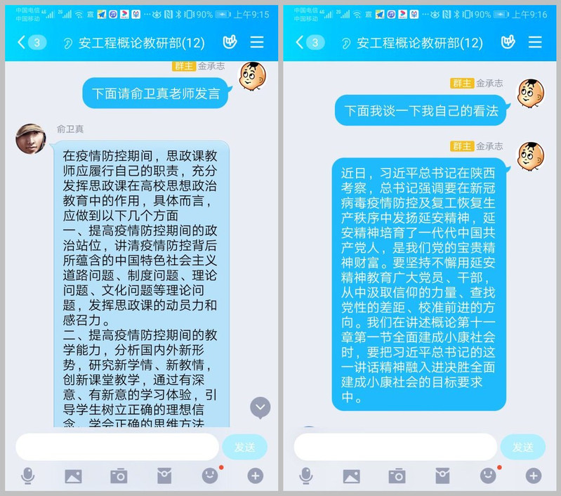 4月25日,为进一步贯彻落实习近平总书记关于疫情防控系列重要指示精神和中央、省委的有关决策部署,发挥思政课教师开展马克思主义理论教育的关键作用,在学院的统一安排下,“概论”课教研部利用QQ平台积极开展线上主题研讨和集体备课。