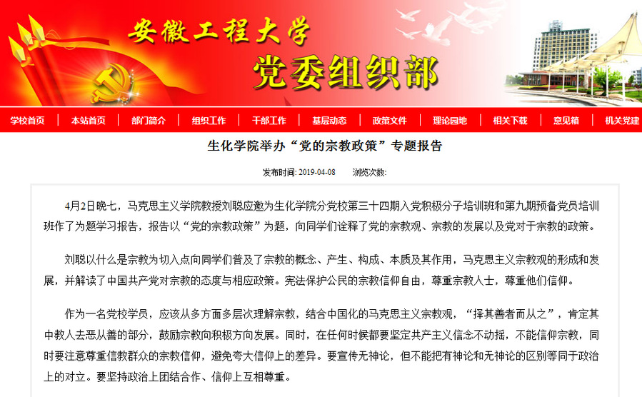 我院刘聪教授应邀生化学院作“党的宗教政策”专题报告