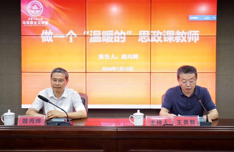 7月15日,全国先进工作者、全国模范教师、全国最美思政课教师、全国师德标兵、全国高校思政课教师年度影响力人物路丙辉教授应邀来我校作题为《做一个“温暖的”思政课教师》的专题报告,为我们送来一场“温暖的”报告、一次感人的“暖心之旅”。学校全体思政课专兼职教师现场聆听报告,马克思主义理论学科全体研究生线上聆听了报告,马克思主义学院党总支书记王勇智主持报告会。