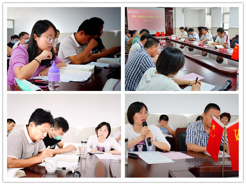 座谈会上,孙浩然传达了上级关于认真组织学习《习近平谈治国理政》第三卷相关文件精神及学校的有关安排;马克思主义学院院长吴月红汇报了学院“对标‘六要’标准,争做‘四有’好教师专题教育活动”开展情况及暑期工作情况;校办公室主任郑千里、团委书记郭广春、宣传部副部长李红星分别结合各部门工作职责以及已经开展的学习宣传贯彻《习近平谈治国理政》第三卷相关情况,从不同角度交流了学习的心得体会。