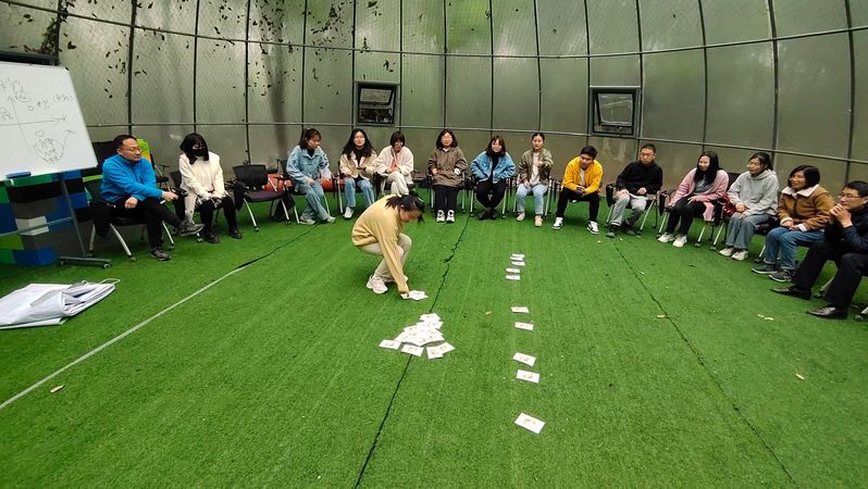 薛保红首先提出,身体是最好的思想政治教育手段,强调了实践的重要性。为了让同学们有更加直观的认知,薛保红指导同学们进行了一次趣味游戏。通过游戏,同学们掌握了一系列游戏中的方法论,比如合作、沟通、组织等,这些方法论不仅在游戏中发挥重要作用,更可以运用于思想政治教育的各个阶段。最后,薛保红跟大家分享了关于“五育并举”以及德智体美劳五方面关系的理解。