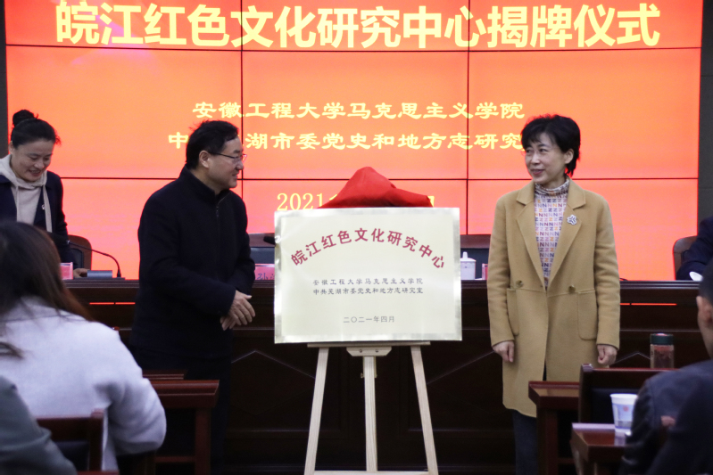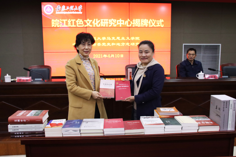 在全场的热烈掌声中,孙浩然和刘萍共同为“皖江红色文化研究中心”揭牌。吴月红与刘萍分别代表双方单位签订了《皖江红色文化研究中心合作共建协议书》及《党支部共建协议》。刘萍代表市委党史和地方志研究室向皖江红色文化研究中心赠书。