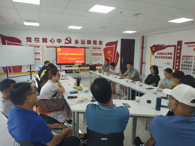 7月12日上午,思想政治教育教师党支部在图书综合楼1507会议室召开“庆祝建党100周年”党史学习教育专题组织生活会。校党委常委、宣传部部长、马克思主义学院党总支书记孙浩然到会指导,会议由学院副院长、支部书记李海涛主持。