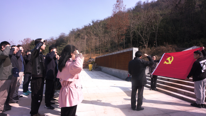 在新四军父子岭烈士纪念碑前,当地一位村老书记介绍了当年新四军一团在三里店父子岭与日军进行激烈战斗并最终以少胜多的抗战故事。全体党员被新四军不怕牺牲、顽强拼搏的精神所感动,向父子岭烈士纪念碑深情鞠躬,并在纪念碑前庄严宣誓,重温入党誓词。