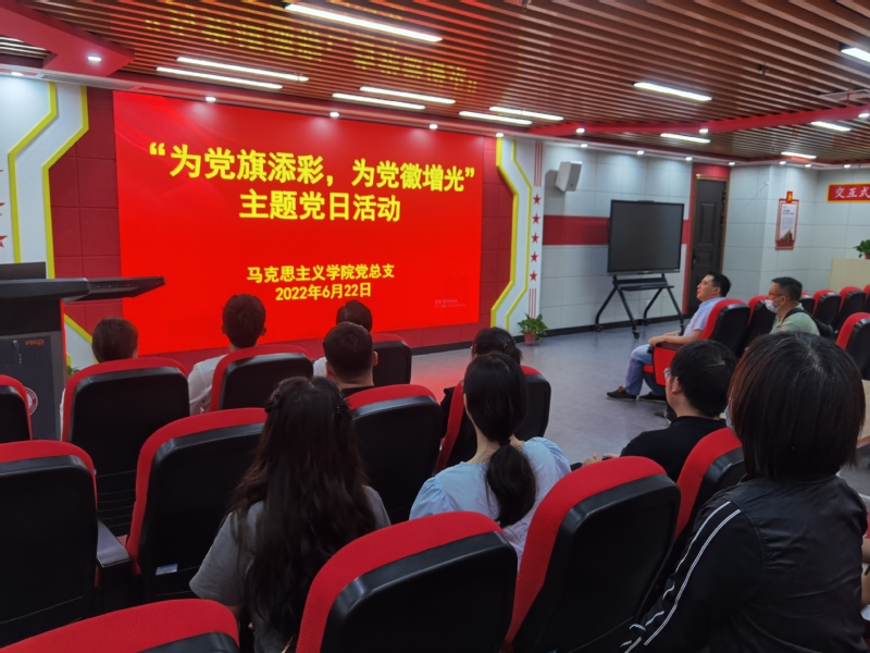 为庆祝中国共产党成立101周年,推进党史学习教育常态化长效化,6月22日,马克思主义学院各党支部开展“为党旗添彩,为党徽增光”主题党日活动。