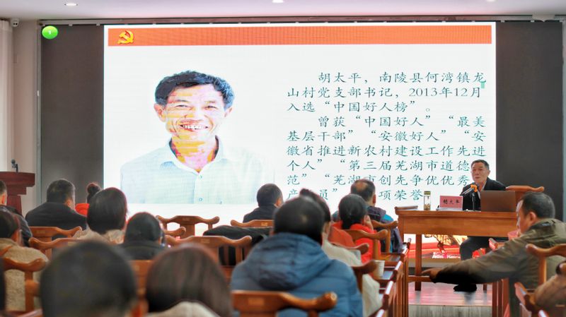 党员教师们来到学校定点帮扶单位何湾镇涧滩村调研乡村振兴工作,并到龙山学院开展党性教育。在龙山学院会议室,何湾镇龙山村党总支第一书记、芜湖市诗画何湾文化发展有限公司总经理、“中国好人”胡太平为党员们上了一堂精彩的党课。党课以抓党建促乡村振兴为主线,讲述了龙山村坚持以党建为引领,通过党员群众团结奋斗,把一个原本不通道路的贫困村建设成为如今远近闻名的美丽乡村的过程。刘伟对本次党性教育进行了总结,他强调,这是深入学习贯彻落实党的二十大精神的过程,更是一次洗涤心灵、锤炼党性的过程,提供了思政课鲜活而生动的教学素材,对思政课老师如何讲深、讲透、讲活思政课提供了借鉴。党课结束,全体党员参观了龙山学院党建文化展示馆,进一步了解了南陵红色教育和龙山的乡村振兴情况。