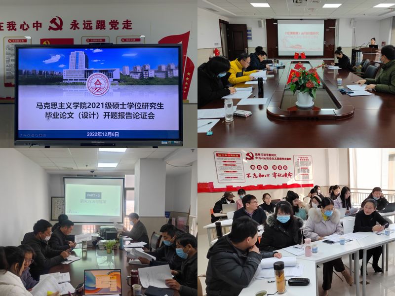 2022年12月6日下午,马克思主义学院举行2021级硕士学位研究生毕业论文(设计)开题报告论证会。本次论文开题报告论证会按照论文选题共分为三组,分别由李海涛、刘德军、彭鸿雁教授主持。2021级全体研究生参加此次报告会,2022级全体研究生旁听。