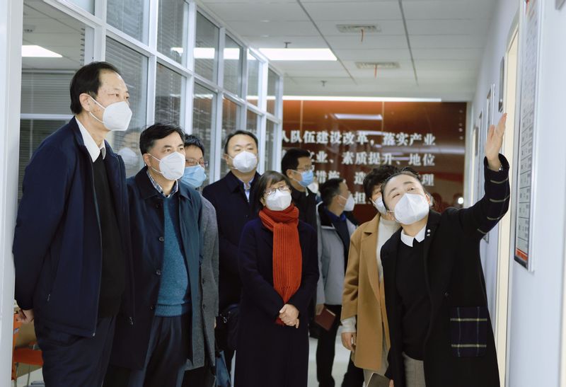 1月11日下午,安徽省总工会党组成员、副主席胡东辉等一行4人在芜湖市人大常委会副主任、市总工会主席董萍的陪同下,专程来到RayBetApp官网下载 ,调研芜湖市产业工人队伍思想政治工作研究中心(以下简称“研究中心”)。校党委书记张志宏,校党委副书记、研究中心管委会主任苏国红,相关学院和部门负责人陪同调研。