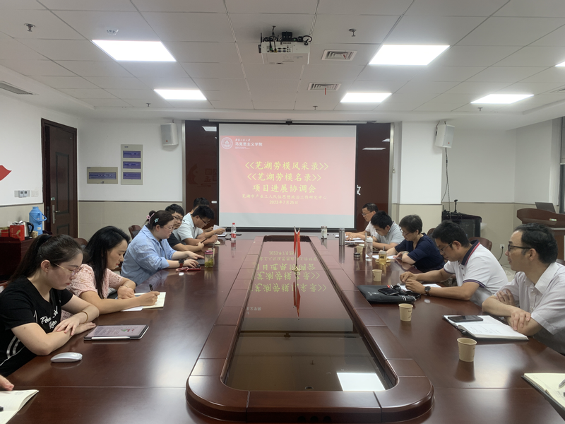 2023年7月25日下午,芜湖市产业工人队伍思想政治工作研究中心项目组在图书馆T1512举行《芜湖劳模风采录》《芜湖劳模名录》采编工作协调会。校党委副书记苏国红、人文学院院长刘军、校团委书记李恒奎、马克思主义学院副院长李海涛和项目组成员参加会议。会议由苏国红书记主持。