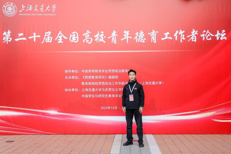 为深入学习贯彻党的二十大精神,用习近平新时代中国特色社会主义思想铸魂育人,推动新时代思想政治教育改革创新,促进青年德育工作者沟通、交流与成长,在中国高等教育学会思想政治教育分会指导下,由《思想教育研究》编辑部、教育部高校思想政治工作创新发展中心(上海交通大学)主办,上海交通大学马克思主义学院、中国学位与研究生教育学会德育委员会协办的第二十届全国高校青年德育工作者论坛在于12月1日至3日在上海召开。来自全国100余所高校的专家学者、高校青年德育工作者和上海高校师生代表共300余人参加了本次论坛。在李海涛教授指导下,2023级硕士研究生刘洋撰写的《习近平青年寄语的内在逻辑、深刻内涵和践行路径》入选会议,并受邀参会。