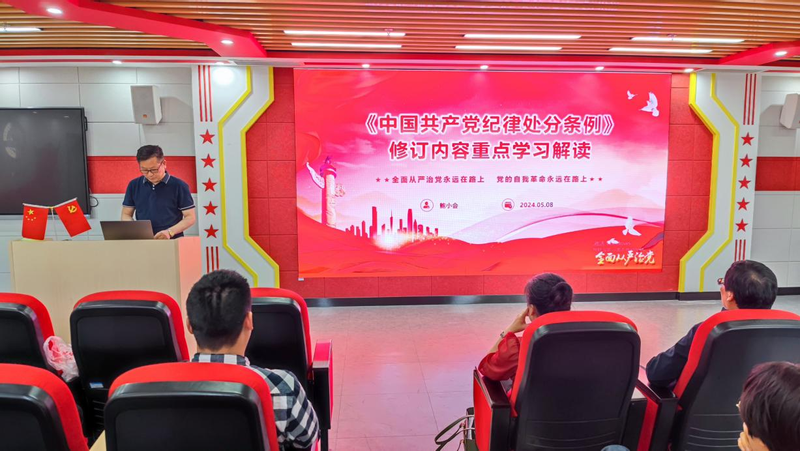 为深入学习贯彻习近平总书记关于加强党的纪律建设的重要论述和关于党纪学习教育的重要讲话重要指示精神,深入学习贯彻《中国共产党纪律处分条例》(以下简称《条例》),推动党纪学习教育走深走实,5月8日下午,习近平新时代中国特色社会主义思想概论教研部教师党支部开展书记讲党课活动。本次党课由支部书记鲍小会主讲,支部全体党员参加。