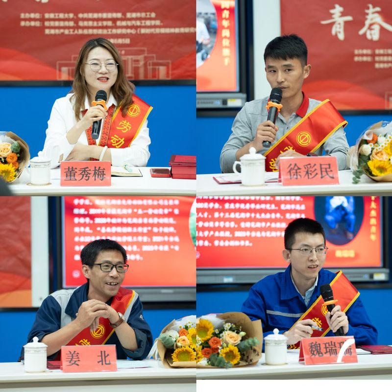 本次活动以“劳模引领,向‘新’而行”为主题,邀请“全国五一巾帼标兵”、安徽海螺川崎装备制造有限公司工会副主席、党群办主任、管理部部长董秀梅,“全国青年岗位能手”、“安徽省五一劳动奖章”获得者、芜湖埃科泰克动力总成有限公司制造部工段长徐彩民,“安徽省五一劳动奖章”获得者、芜湖佳先传动轴有限公司总装部经理姜北,芜湖市十大杰出青年、冶金博士、芜湖新兴铸管有限责任公司炼铁部副部长魏瑞瑞等4位劳模工匠代表参加活动。