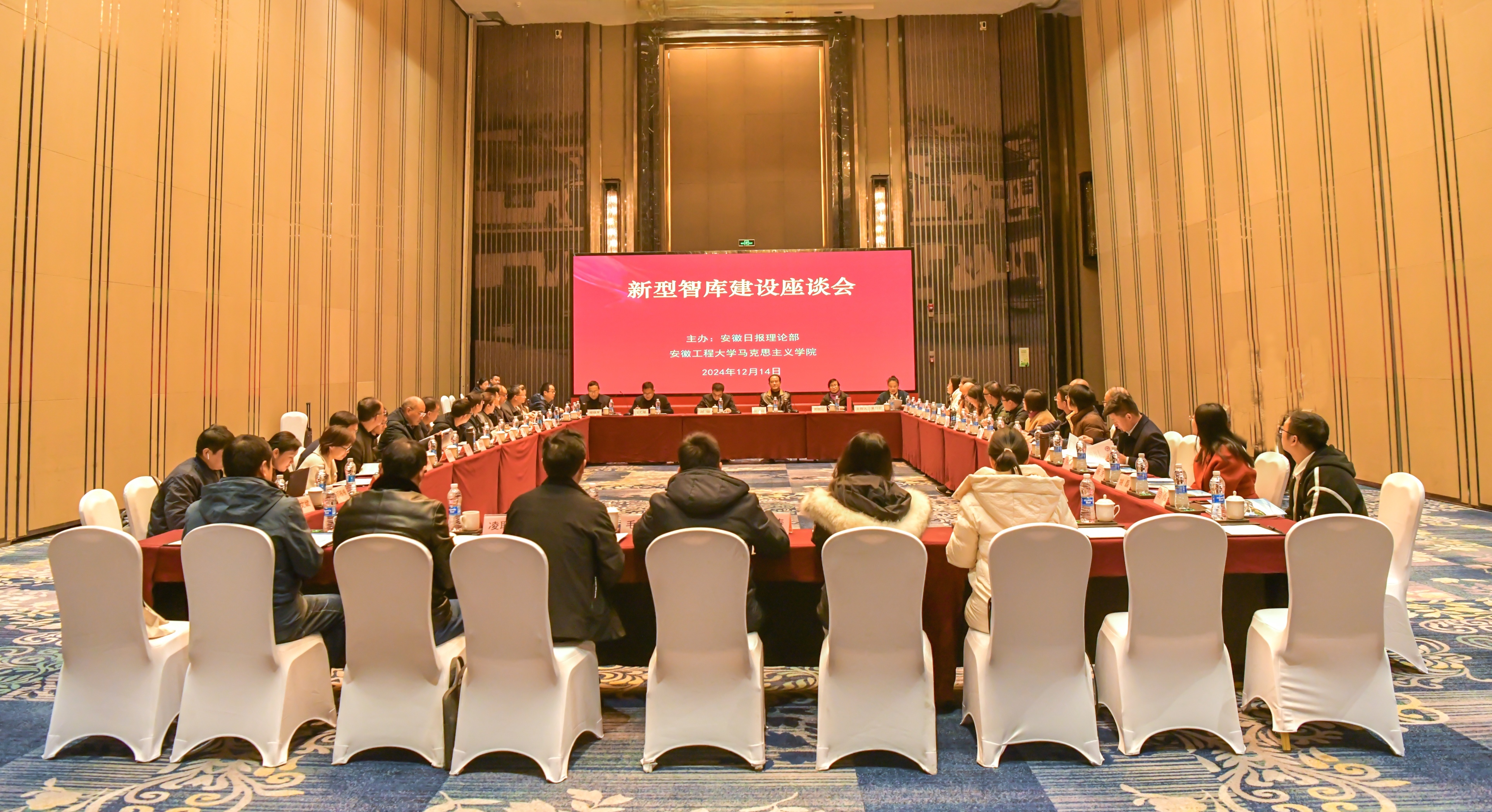 为贯彻落实党的二十大和二十届三中全会精神,学习贯彻习近平总书记考察安徽重要讲话精神,加强我省新型智库建设,12月14日,安徽日报理论部与RayBetApp官网下载 马克思主义学院共同主办了“新型智库建设座谈会”。《安徽日报》报业集团副总编辑计永超、学校党委副书记郑健、学校社科联主席苏国红、安徽日报理论部主编程铁军出席会议。安徽日报理论部全体编辑和省内14所本科院校的党委宣传部、科技处、马克思主义学院负责同志参加座谈会。
