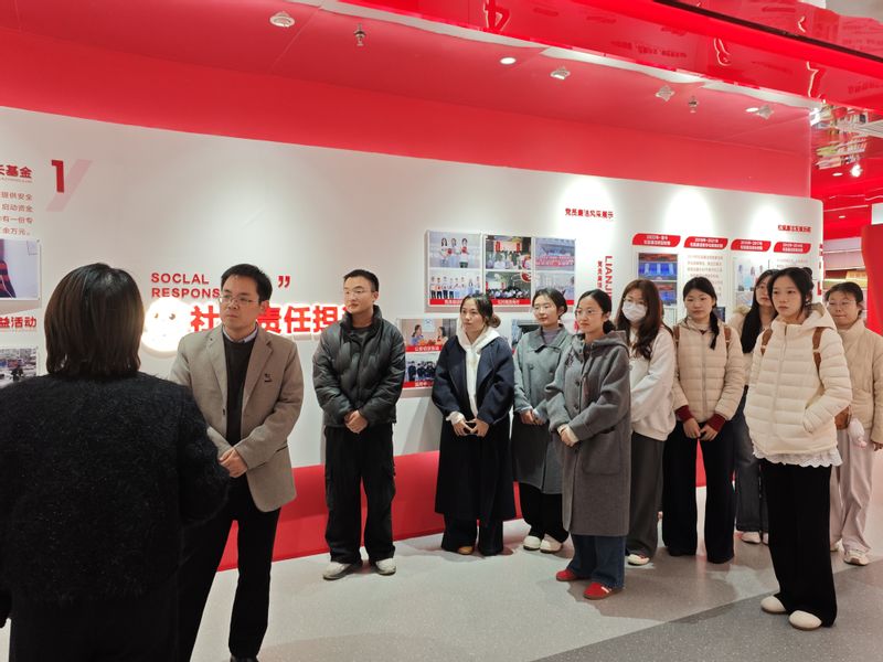 随后,师生重点参观了企业党建展厅。党建负责人对其党建工作方法、廉洁教育、社会责任与担当等方面进行了生动讲解,并详细介绍了该企业在党建引领企业发展、发挥党员先锋模范作用等方面的实践经验和成效,重点讲解了企业结合自身特色开展的党建创新活动、党建与生产经营深度融合的具体举措。