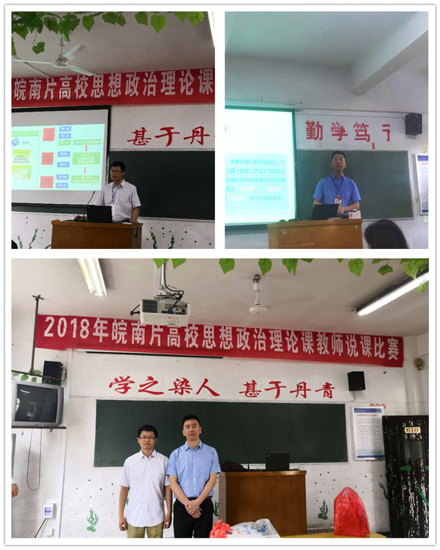 6月9-10日,安徽省高校思想政治理论课说课比赛(皖南赛区)在安庆师范大学菱湖校区举行,我院余文华、赵国锋两位老师经组织推荐,分别参加了《毛泽东思想和中国特色社会主义理论体系概论》和《马克思主义基本原理概论》组的比赛。