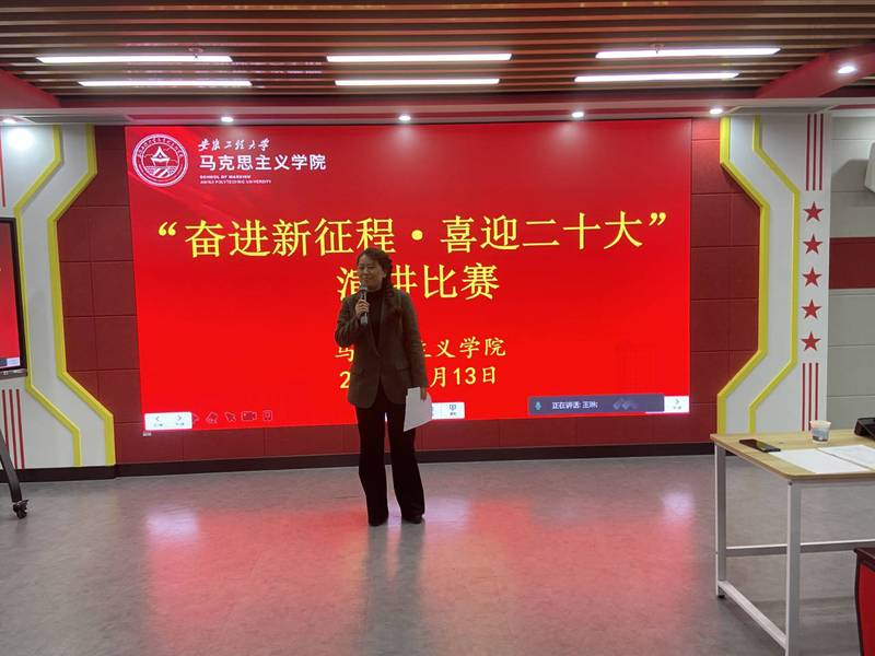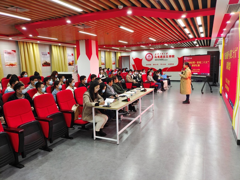为深入学习贯彻习近平新时代中国特色社会主义思想,提升我校马克思主义理论专业研究生培养质量,积极营造喜迎党的二十大的浓厚氛围,4月13日下午,马克思主义学院举办第二届研究生主题演讲比赛。本次比赛的主题为“奋进新征程,喜迎二十大”,旨在讴歌党的百年奋斗历程,迎接党的二十大胜利召开,激发研究生向第二个百年奋斗目标奋勇前进。马克思主义学院研究生兼职班主任程太红老师主持比赛,数理与金融学院党委副书记王燕老师,电气工程学院办公室主任黎新宏老师,以及马克思主义学院陈金香、夏雨清、杨孝旭老师担任比赛评委。副院长李海涛到场指导。马克思主义学院2020级和2021级在校研究生、材料科学与工程学院研究生党员到场观摩学习。
