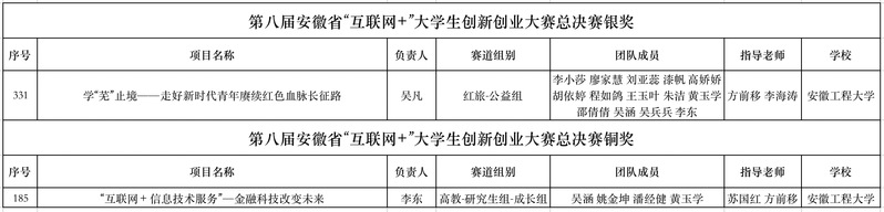 “互联网+”大学生创新创业大赛是目前国内最高规格、最具权威、最具影响力的“双创”顶级盛会。我院在第八届安徽省“互联网+”大学生创新创业大赛暨中国国际“互联网+”大学生创新创业大赛选拔赛总决赛中所获一银一铜的成绩是我院人才培养、科学研究、成果转化的最直接体现,有力彰显了我院坚持理论联系实际、赋能理论创新与实践创新,深化创新创业教育改革的显著育人成效。