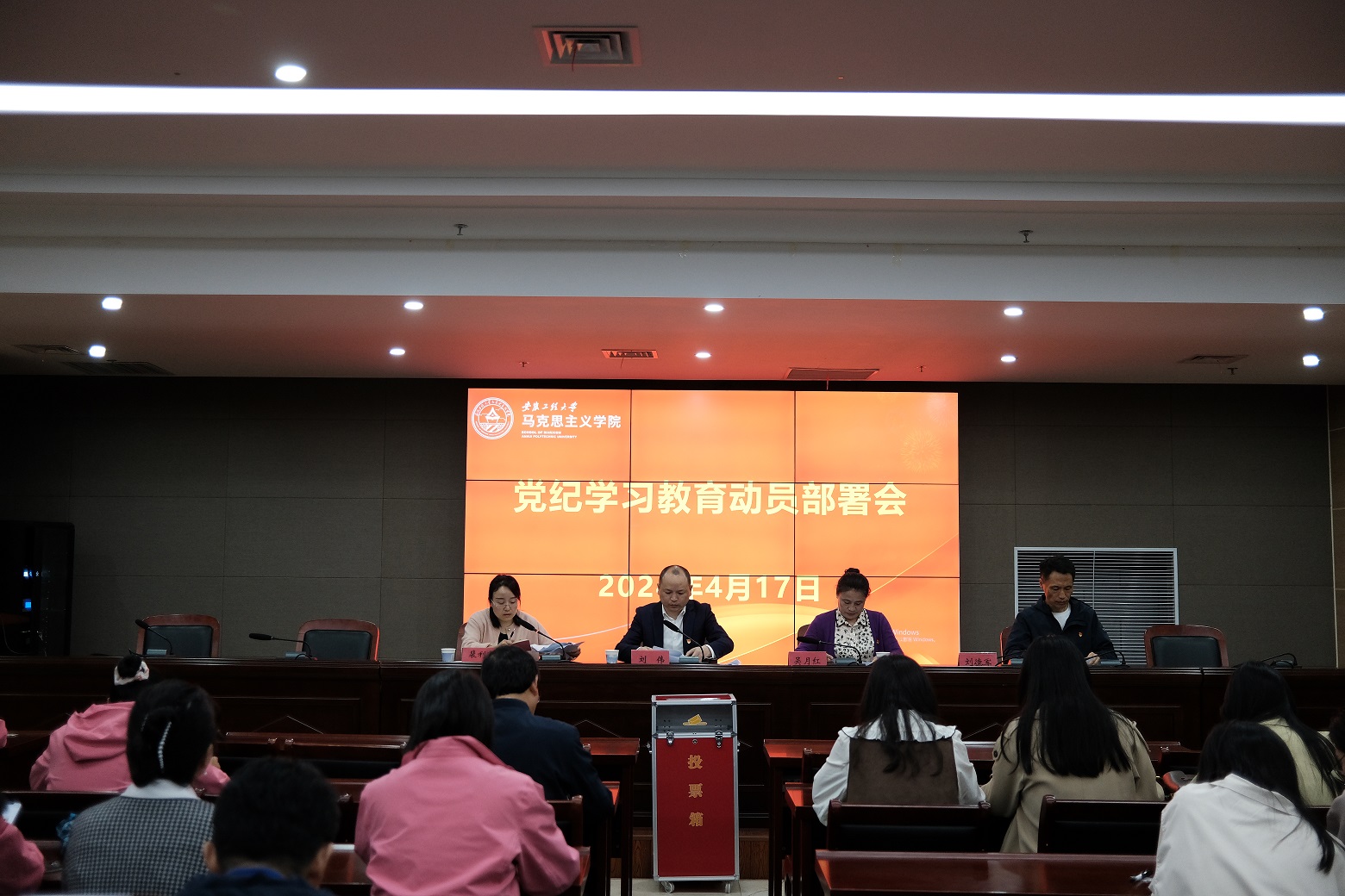 4月17日上午,马克思主义学院在图书馆202会议室召开党纪学习教育动员部署会,全体师生党员参加。会议由学院党总支书记刘伟主持。