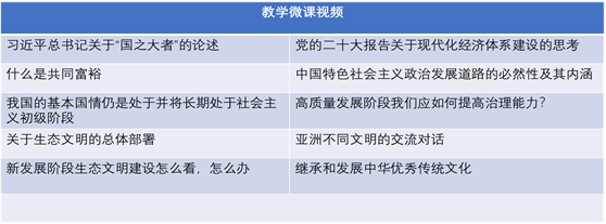 为巩固课堂教学效果,延伸课堂教学,课程组制作涵盖教材所有章节的微课视频。根据教材的结构和内容,课程组设定每个专题至少有一个微课视频。这些微视频侧重阐释重大的时政热点问题,强化学生的获得感。目前,所有微视频已经在学习通平台投放使用。