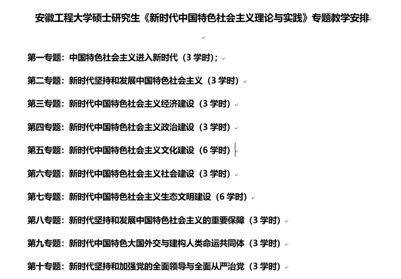 《新时代中国特色社会主义理论与实践》是面向硕士研究生开设的公共学位课程,是各专业硕士研究生阶段的公共思想政治理论课。本课程的任务是使硕士研究生进一步掌握中国特色社会主义理论体系,深化对习近平新时代中国特色社会主义思想的认识,提高运用最新的创新理论观察时代、分析和解决实际问题的能力和本领,坚定对马克思主义的信仰、对中国特色社会主义的信念、对实现中华民族伟大复兴中国梦的信心。近年来,学院积极推进硕士研究生《新时代中国特色社会主义理论与实践》课程建设,依托安徽省研究生质量工程项目“地方院校马克思主义硕士研究生‘3+3+3’一体化混合模式人才培养模式建构与实践”项目和学校研究生质量工程项目《新时代中国特色社会主义理论与实践研究(微课)》,探索教学模式的改革和创新。
