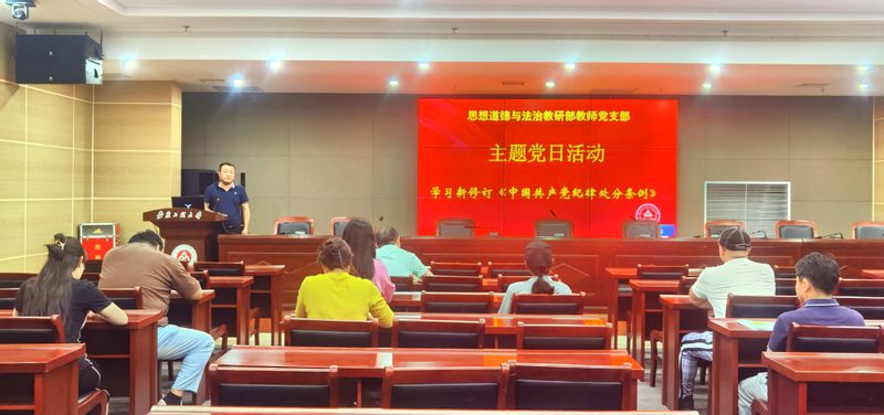 为深入学习贯彻新修订的《中国共产党纪律处分条例》(以下简称《条例》)进一步推动党纪学习教育走深走实,引导支部党员学纪、知纪、明纪、守纪,5月22日,马克思主义学院思想道德与法治教研部教师党支部开展了学习《条例》主题党日活动。学院党总支书记刘伟作为联系支部领导参加了主题党日活动。活动由支部书记刘艳主持。