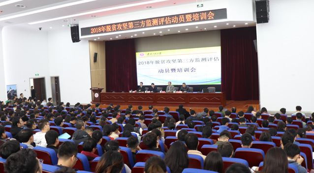 11月30日下午,学校在图书综合楼5楼报告厅召开2018年脱贫攻坚第三方监测评估动员暨培训会。省扶贫办政策法规处处长靳贞来,校党委书记刘宁、副校长郭兴众出席会议,参与2018年第三方监测评估培训的教师和学生参加会议。会议由办公室主任王弘主持。