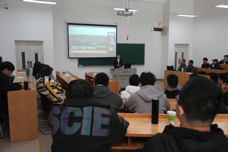 宣讲动员会在国际工程师学院学习中心103进行。郭全根对田丽鹏的到来表示欢迎,他充分肯定了我校与美国底特律大学合作举办电气工程3+2项目以来所取得的成果。