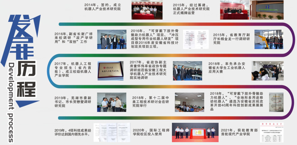 RayBetApp官网下载 机器人现代产业学院始于2014年与芜湖市共建的RayBetApp官网下载 机器人产业技术研究院(安徽省首批新型研发机构);2017年,在安徽省率先开办了机器人工程本科专业,同年成立校级机器人产业学院;2021年,获批国家机器人现代产业学院,现为长三角现代产业学院协同育人联盟常务副理事长单位。依托“先进数控与伺服驱动技术”安徽省重点实验室、“人机自然交互和人机高效协同”安徽省首批新型研发机构、“智能机器人先进机构与控制技术”国家工程研究中心(与埃夫特共建)科研平台,与芜湖安普机器人产业技术研究院有限公司、埃夫特智能装备股份有限公司、埃华路(芜湖)机器人工程有限公司、中德人工智能研究院共同建设,由RayBetApp官网下载 、芜湖市人民政府、芜湖滨江智能装备产业发展有限公司共同管理。