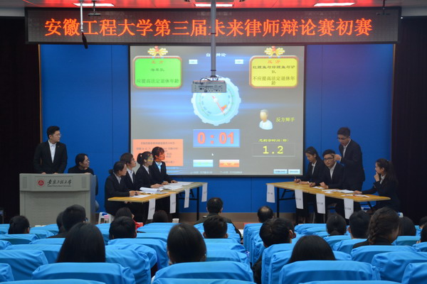 高校未来律师辩论赛属于安徽省B类赛事,旨在提高学生综合运用法律知识、法律方法论的水平和法律素养。本次辩论赛共有来自机械、电气、生化、艺术、管理、外国语、人文等学院的24支辩论队参加。