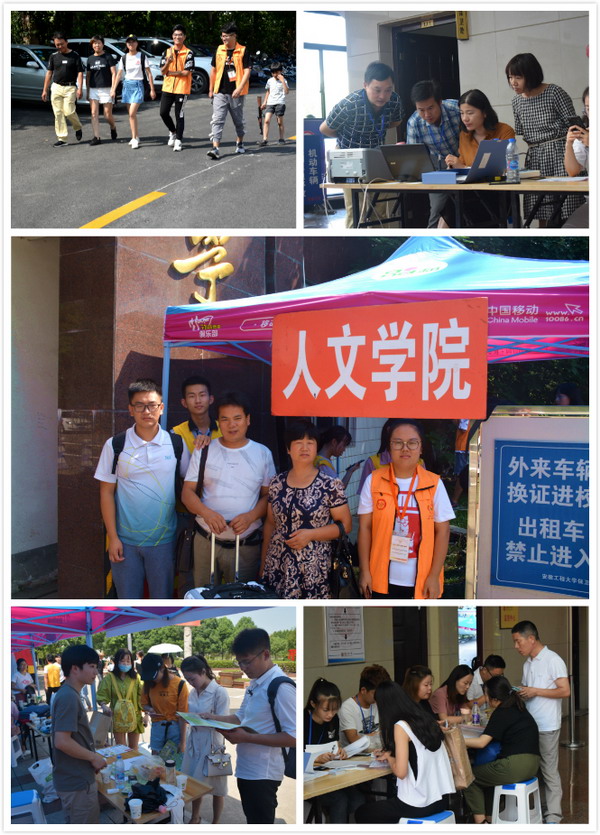 迎新期间,清晨六点时分,志愿者准时到岗,带着满腔热情,按照既定的部署安排全面展开迎新工作。近百名志愿者被分配在新生接待处、咨询处、注册处、宿舍引导组等各个迎新接待点,在各个环节上为新生提供全面服务。