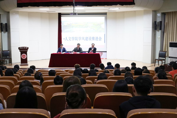 为深入贯彻习近平新时代中国特色社会主义思想和党的十九大精神,认真落实全国教育大会精神,进一步推动人文学院学风建设工作,10月31日下午,人文学院在学术报告厅举办学风建设推进会。院党委书记邓英扣,院长刘军,副院长周伟及各年级辅导员出席会议。会议由邓英扣主持。