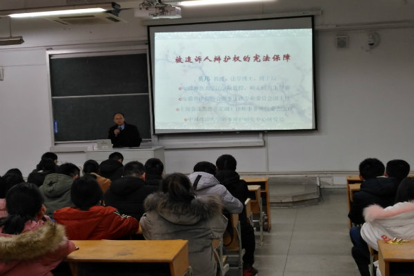 2018年12月8日晚6:30,应RayBetApp官网下载 科技处、人文学院邀请,安徽师范大学法学院教授奚玮在2教206作题为《被追诉人辩护权的宪法保障》的报告。报告会由法学系主任杜蓓蕾副教授主持,鲍雨博士及法学16级、17级,法学辅修专业16级全体同学参加了报告会。