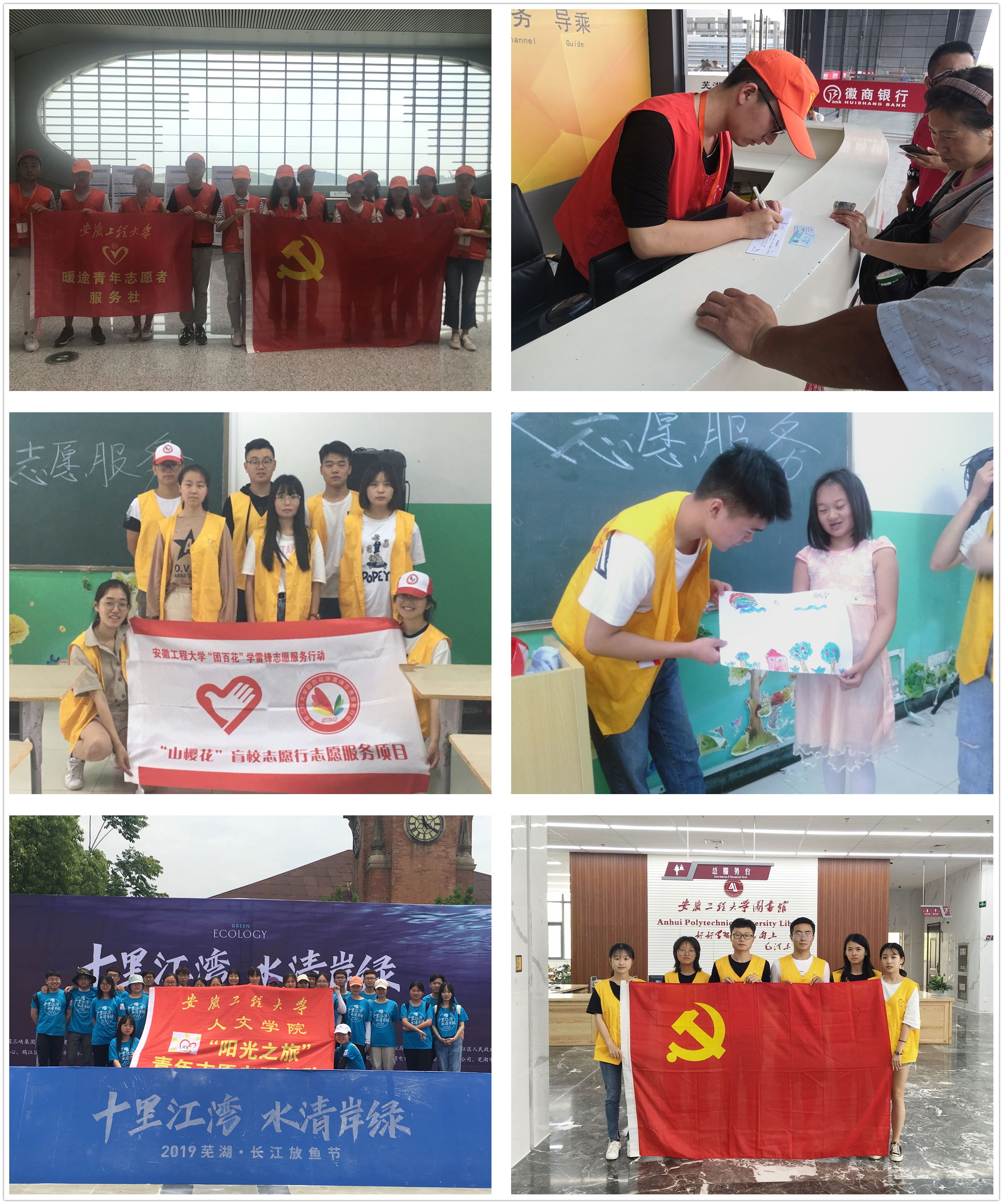 为引导青年学生在新时代进一步坚定理想信念、矢志艰苦奋斗,争做“爱国、励志、求真、力行”的圆梦新一代,党员、入党积极分子与学院暖途青年志愿服务社、阳光之旅青年志愿者服务队,组织开展了端午火车站志愿引导服务、盲校儿童志愿行,参加了由芜湖市政协、农委组织开展的社会调查、长江放鱼节,还参与了校内图书捐赠等一系列活动,通过活动引导党员、积极分子有步骤进入到志愿服务体系中,切实发挥党员先锋模范作用和党组织的战斗堡垒作用。
