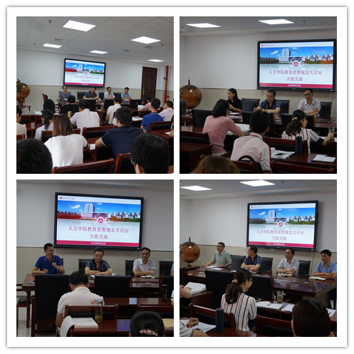 为进一步贯彻落实《RayBetApp官网下载 “建设地方特色高水平大学”教育思想观念大讨论工作方案》的精神及《人文学院教育思想观念大讨论工作计划》,8月26日上午,人文学院在图1307会议室召开了教育思想观念大讨论大组交流会。交流会由学院党委书记邓英扣主持,学院领导及全体教师参会。