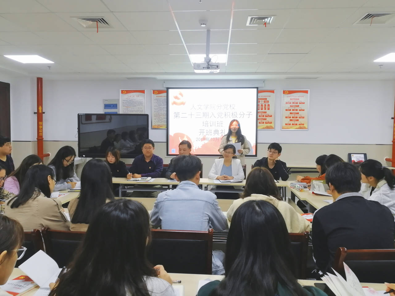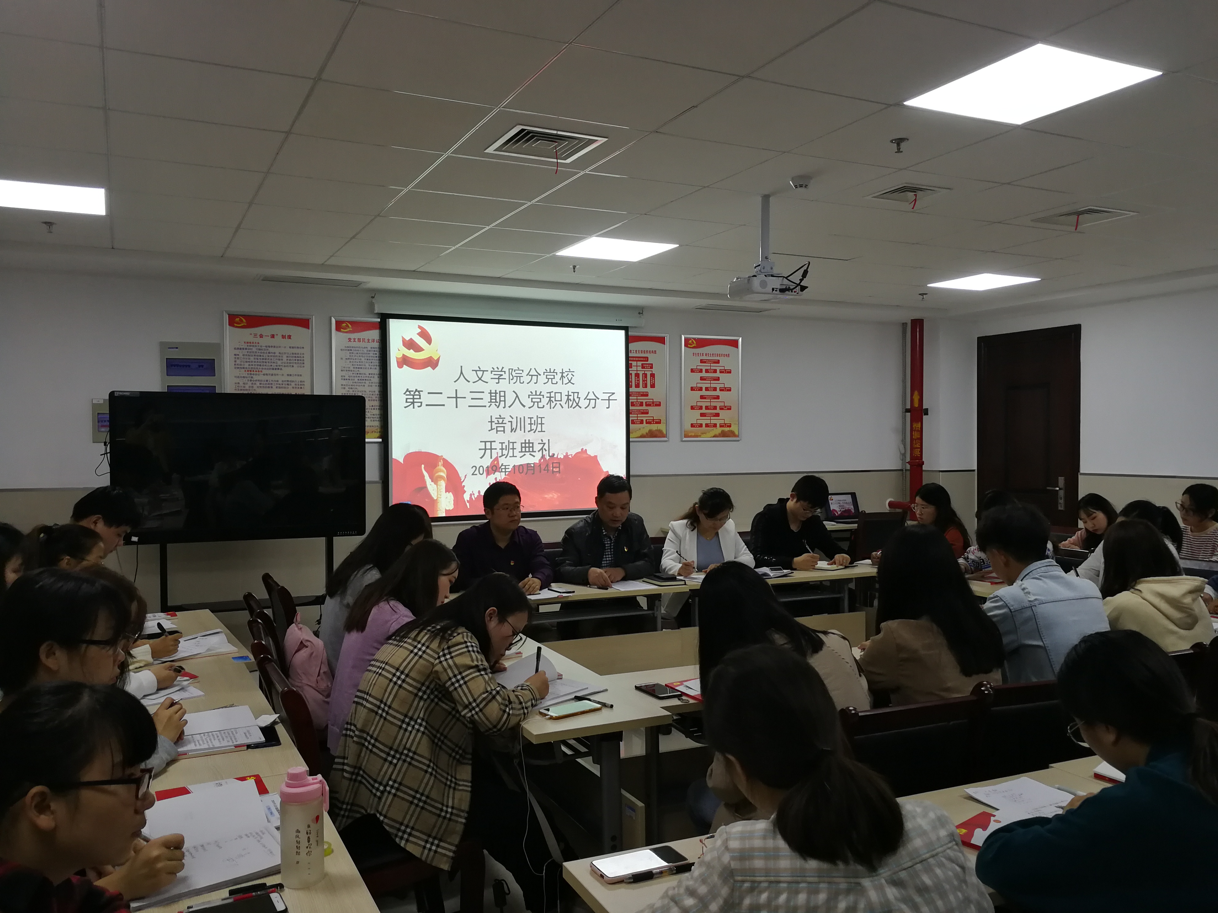 10月14日下午,人文学院分党校第二十三期入党积极分子培训班开学典礼在图综1415室举行。院党委书记邓英扣、院党委副书记金艾裙、组织员和各学生党支部书记出席典礼,本期培训班全体学员参加典礼。金艾裙主持典礼。