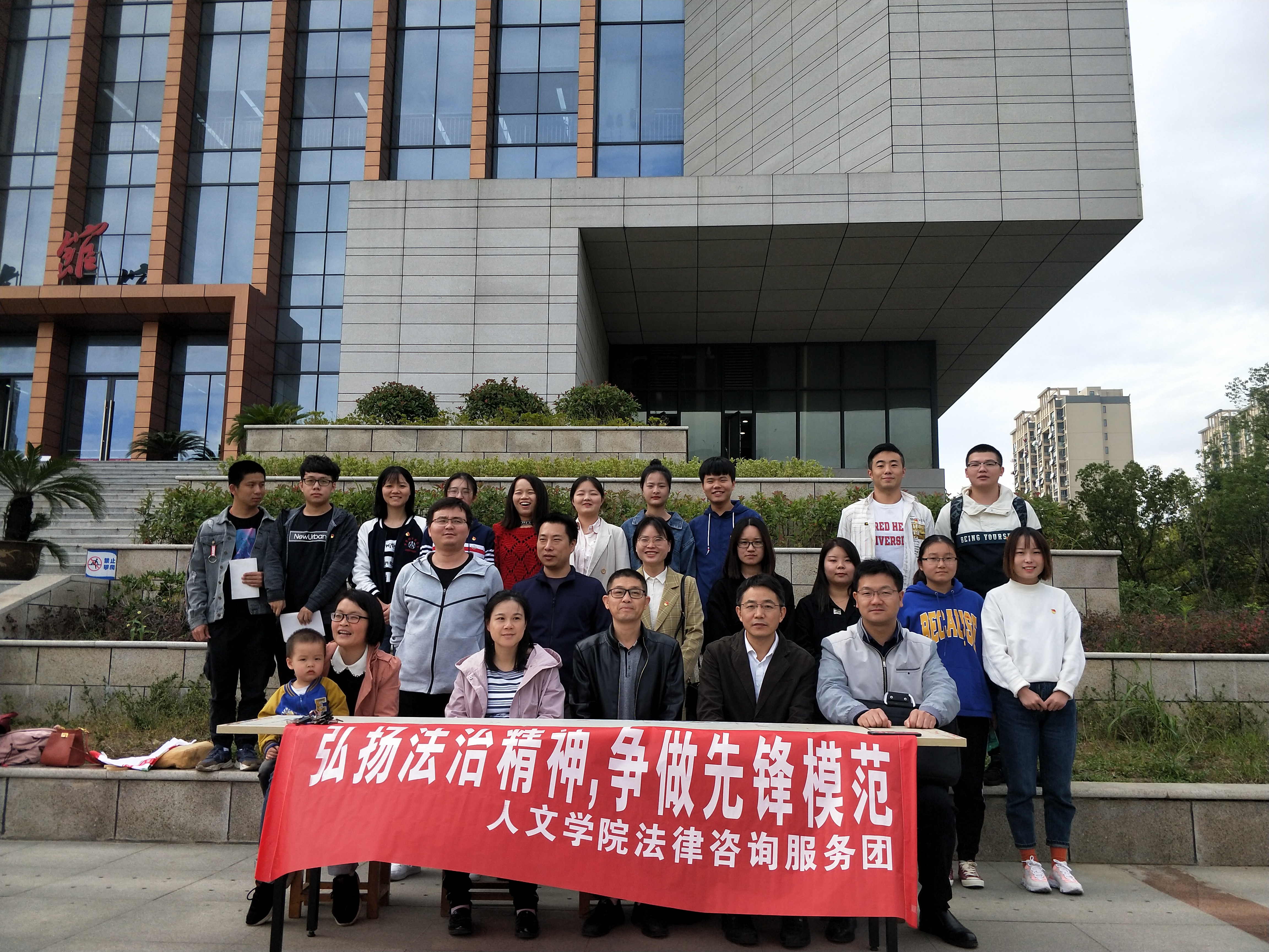 纵观祖国70年的法治建设与发展,70年砥砺奋进,70年春华秋实,70年初心不改,70年辉煌历程,无不体现着:法治兴,则国兴;法治强,则国强。人文学院党员师生坚守初心之源,担使命之责,努力将学习理论和重在实践相结合,发挥专业优势,通过普及法治精神,宣传祖国70年来的法制建设成就,激发广大师生群体的法治意识,砥砺前行,为建设国内知名、省内一流的地方特色高水平大学的建设目标而努力。