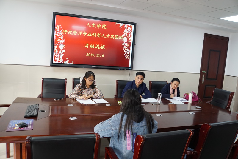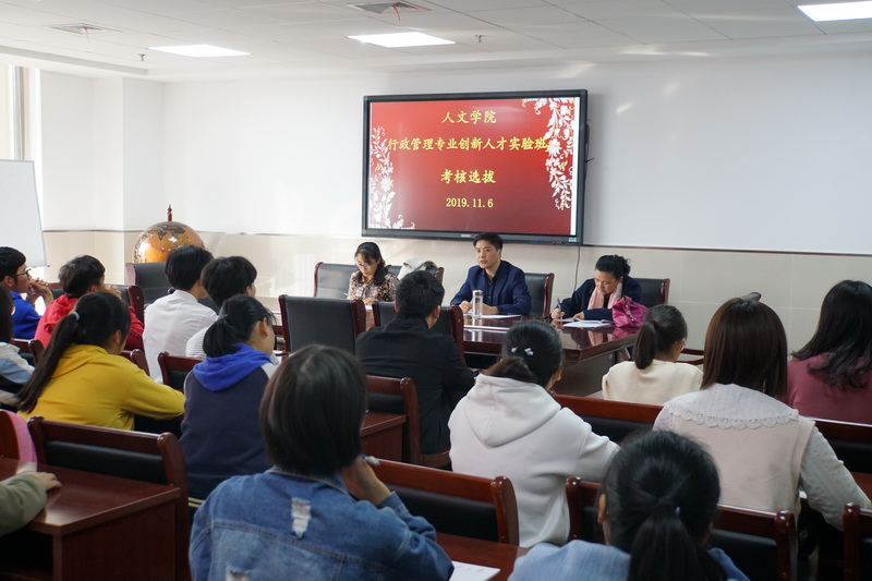 11月6日下午,人文学院行政管理专业创新人才实验班的学员考核选拔工作,在学院会议室举行。考核工作由人文学院副院长周伟主持,专任教师路稳玲、蒋艳等担任考核专家,2019级行政管理专业近40名同学报名参与实验班的考核选拔。