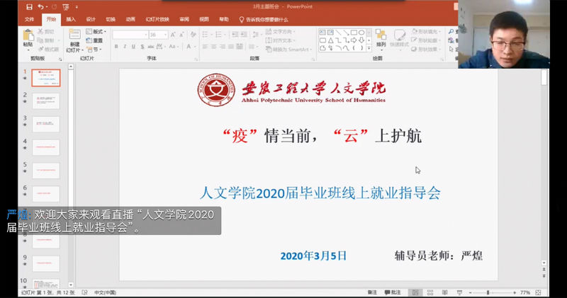 本次线上就业指导会,解答了人文学院毕业生在求职过程中遇到的困难和疑惑,助力人文学子就业服务不断档、求职招聘不打烊,有利于进一步推动人文学院毕业生高质量就业。