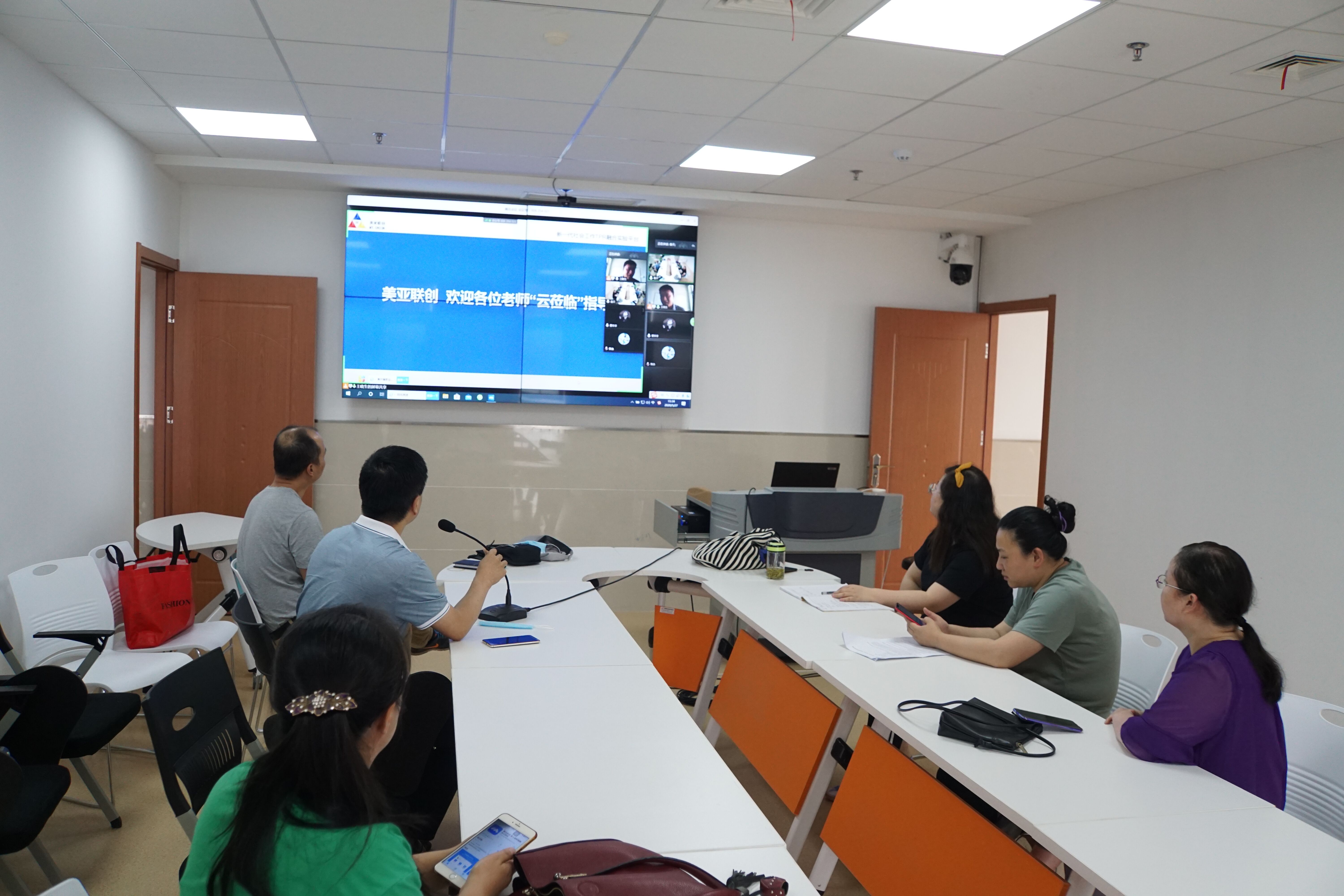 为进一步提高专业教师的实验实训教学水平,提升文科专业应用型人才培养质量,5月27日下午,人文学院邀请美亚联创(北京)科技有限公司的技术工程师,使用互联网直播平台,开展社会工作TPR融合实验平台项目培训交流。社会工作专业全体教师参加了本次培训交流,交流会由人文学院副院长周伟主持。
