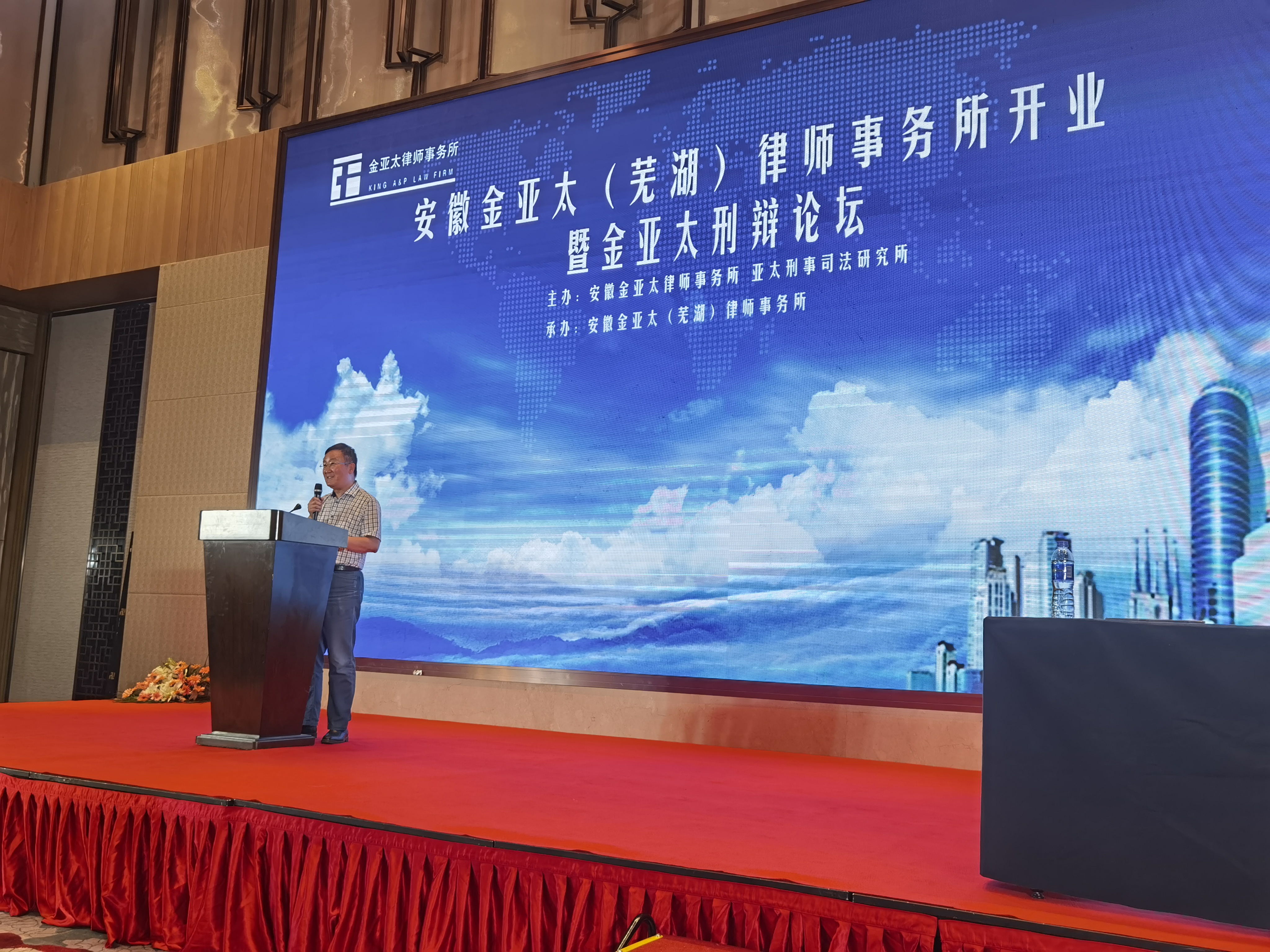 2020年7月4日,由安徽金亚太律师事务所、亚太刑事司法研究所主办,安徽金亚太(芜湖)律师事务所承办的金亚太刑辩论坛在芜湖举行。来自全省的200余名律师参加了本次论坛,人文学院院长刘军、法学系主任杜蓓蕾等一行三人应邀参加会议。