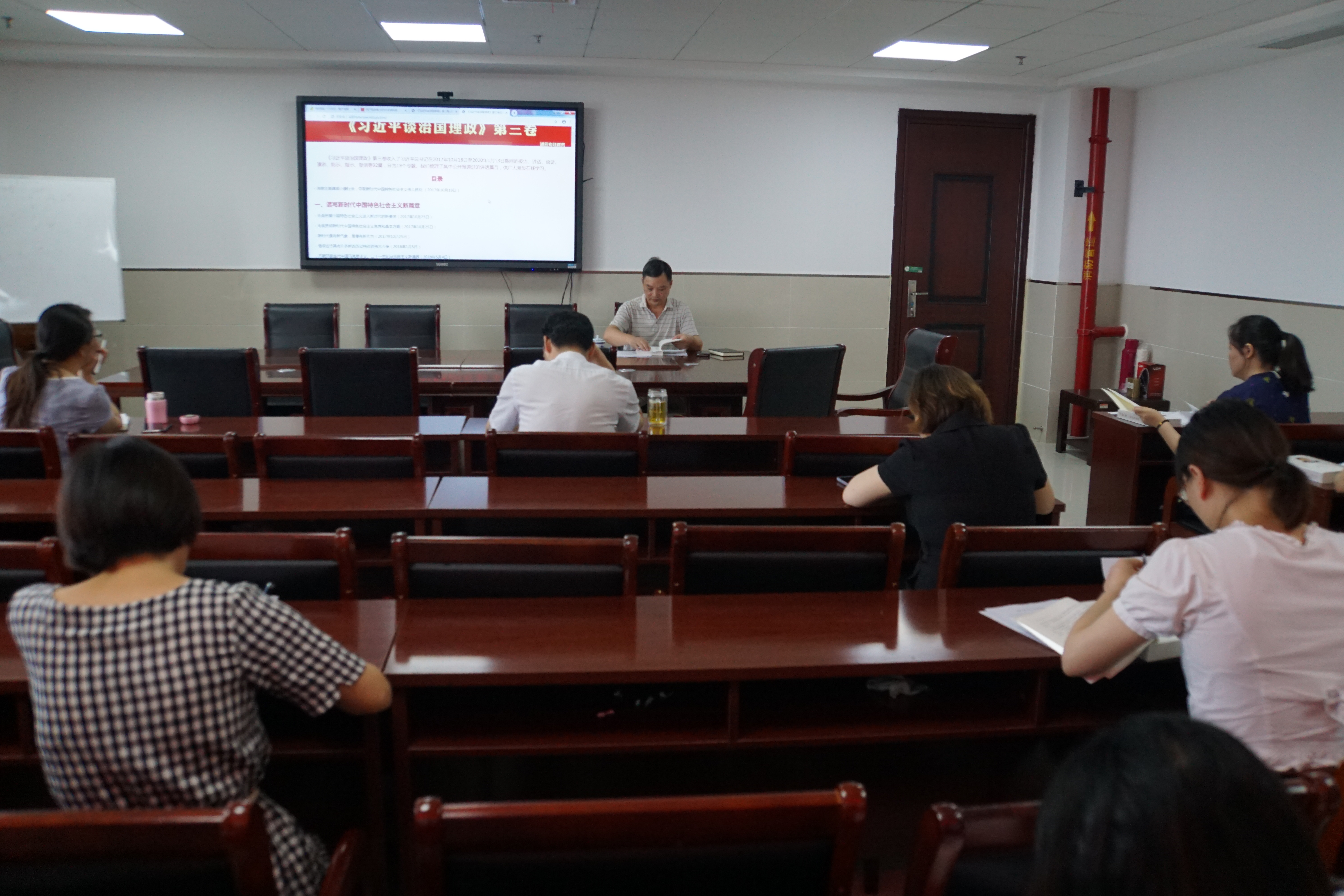 会议伊始,邓英扣带领大家共同学习了《中央宣传部、中央组织部关于认真组织学习〈习近平谈治国理政〉第三卷的通知》,表示习近平新时代中国特色社会主义思想,是新时代中国共产党的思想旗帜,是国家政治生活和社会生活的根本指针,是当代中国马克思主义、21世纪马克思主义,是实现中华民族伟大复兴提供了行动指南。围绕第三卷的内容,邓英扣继续领学了《谱写新时代中国特色社会主义新篇章》中“继续进行具有许多新的历史特点的伟大斗争”、“胸怀两个大局,做好自己的事情”、“习近平在中共十九届一中全会上讲话”等相关内容。