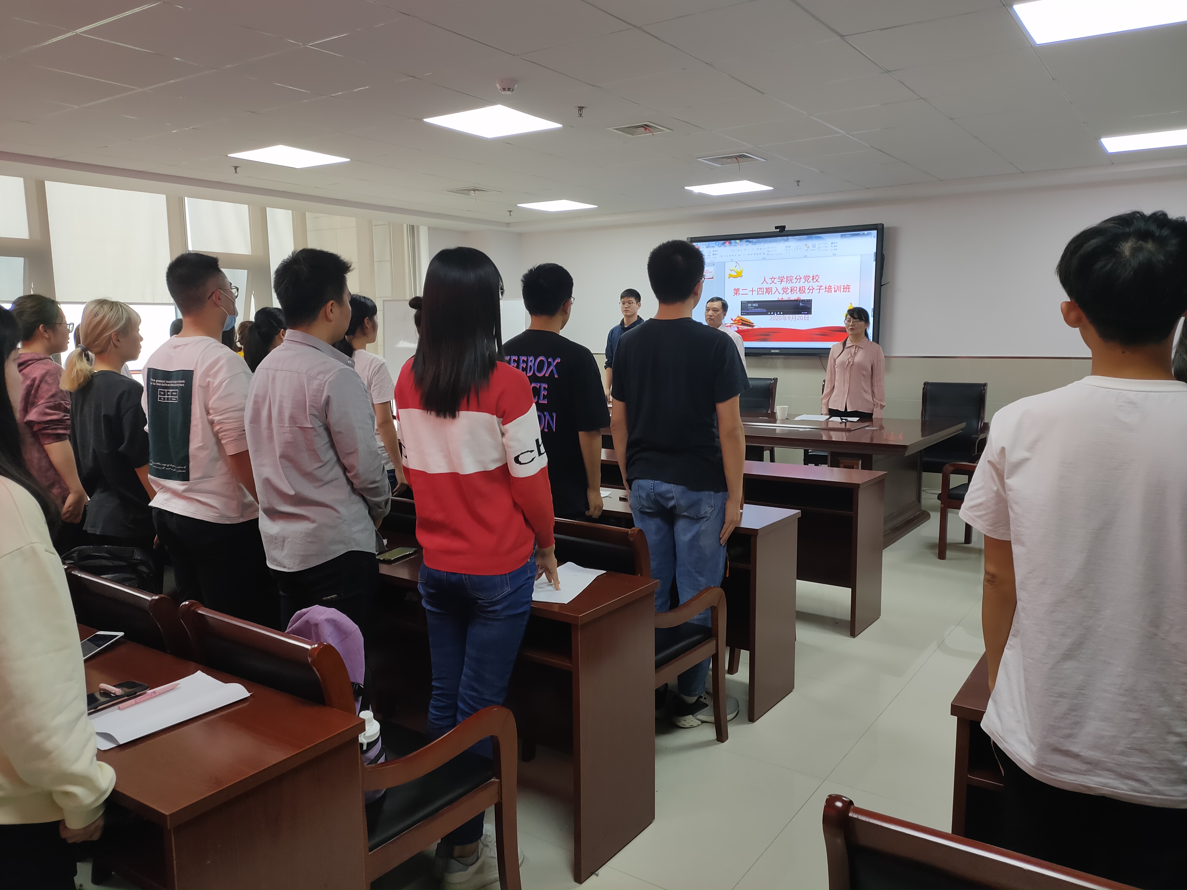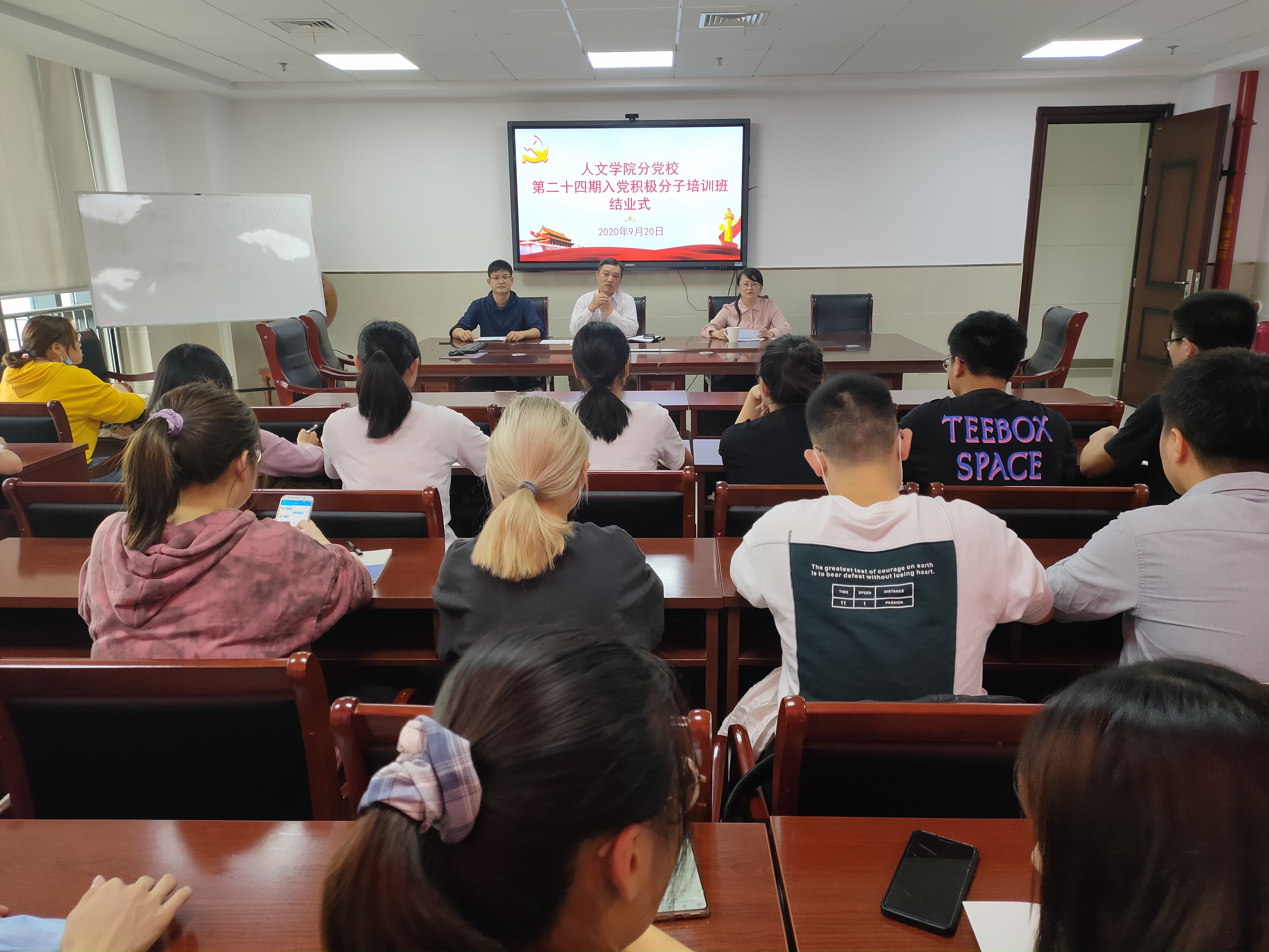 为加强入党积极分子的培养、教育,巩固系统学习党的基本知识、基本理论,学习党的路线、方针、政策,人文学院于9月20日下午在人文学院1307会议室举行第二十四期入党积极分子培训班结业典礼。学院党委书记邓英扣,副书记金艾裙,培训班班主任严煌以及本期培训班全体学院参加结业典礼。典礼由人文学院党委副书记金艾裙主持。