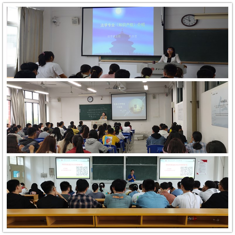 为了帮助2020级新生熟悉专业培养方案和培养目标,增强专业认同,尽快确立学习目标,9月22和23日,人文学院分别召开法学、行政管理、社会工作(专升本)专业介绍会。本次介绍会的主讲人分别是法学系主任杜蓓蕾、公共管理系主任汪茂泰和社会工作系主任周纯。